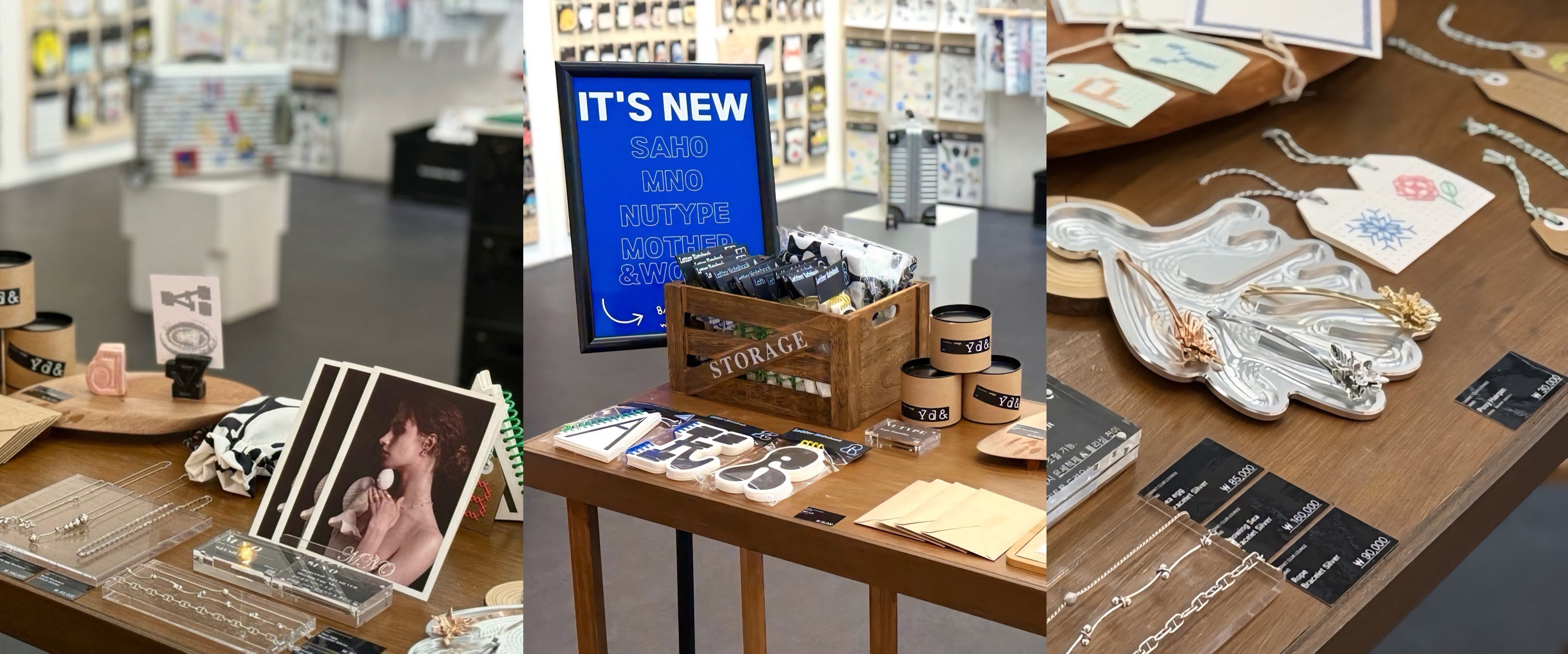 누타입은 폰트의 조형미를 담은 문구류와 패브릭 제품을 준비했고, MNO는 다양한 소재를 탐구하고 조각해 일상의 섬세함을 더해줄 액세서리와 트레이를 선보였어요. 광주에 가시는 분들은 두 브랜드가 제안하는 디자인 철학과 감성을 놓치지 말고 직접 확인해보세요. 🌷