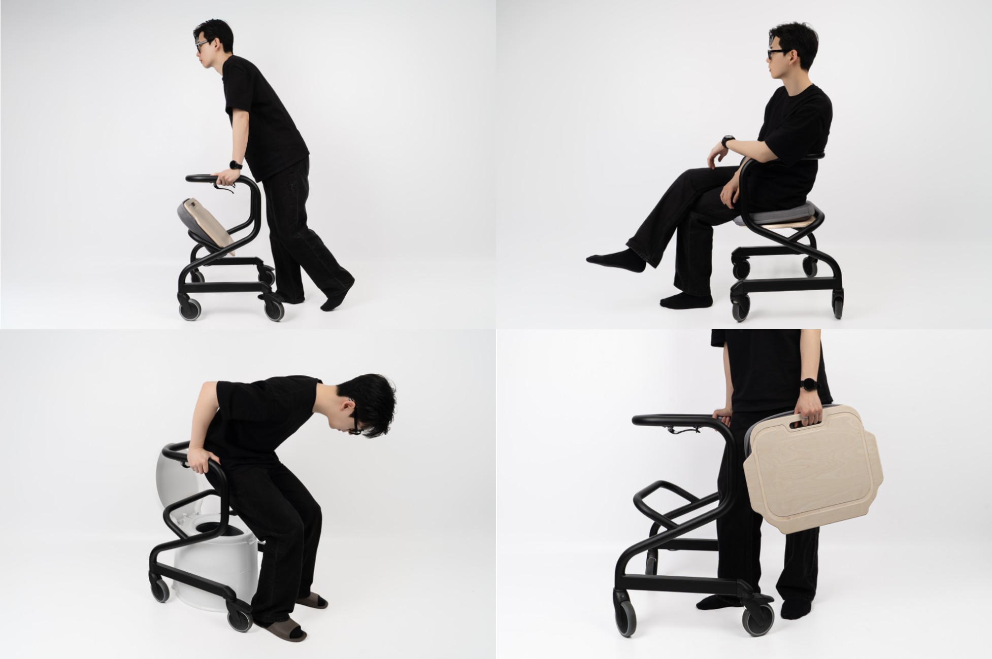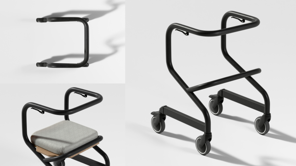 1985년부터 시행되어 온 <우수 디자인(GD) 상품 선정>은 뛰어난 디자인 상품에 정부인증 GD(Good Design) 마크를 부여하는 국내 대표 디자인 인증제도입니다. 유니움의 수상작이자 대표 제품인 ‘롤 워커(Roll Walker)’는 보행 보조만을 위한 의료기기의 고정관념을 뒤엎고, 의자·테이블·트롤리를 하나로 통합해 사용자가 일상 속에서 자연스럽게 활용할 수 있는 ‘생활 가구’로 제작되었어요. 한국 고령자의 신체 치수와 주거 환경을 세심하게 반영해, 안전성과 고령자의 자립성을 동시에 지키는 디자인을 선보였습니다.
